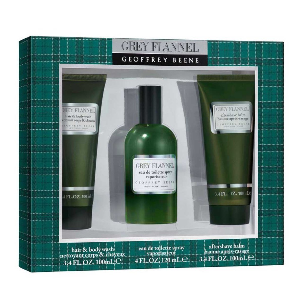 Franela gris estuche 3 piezas hombre edt 120ml + crema de afeitar 100ml + body wash 100ml